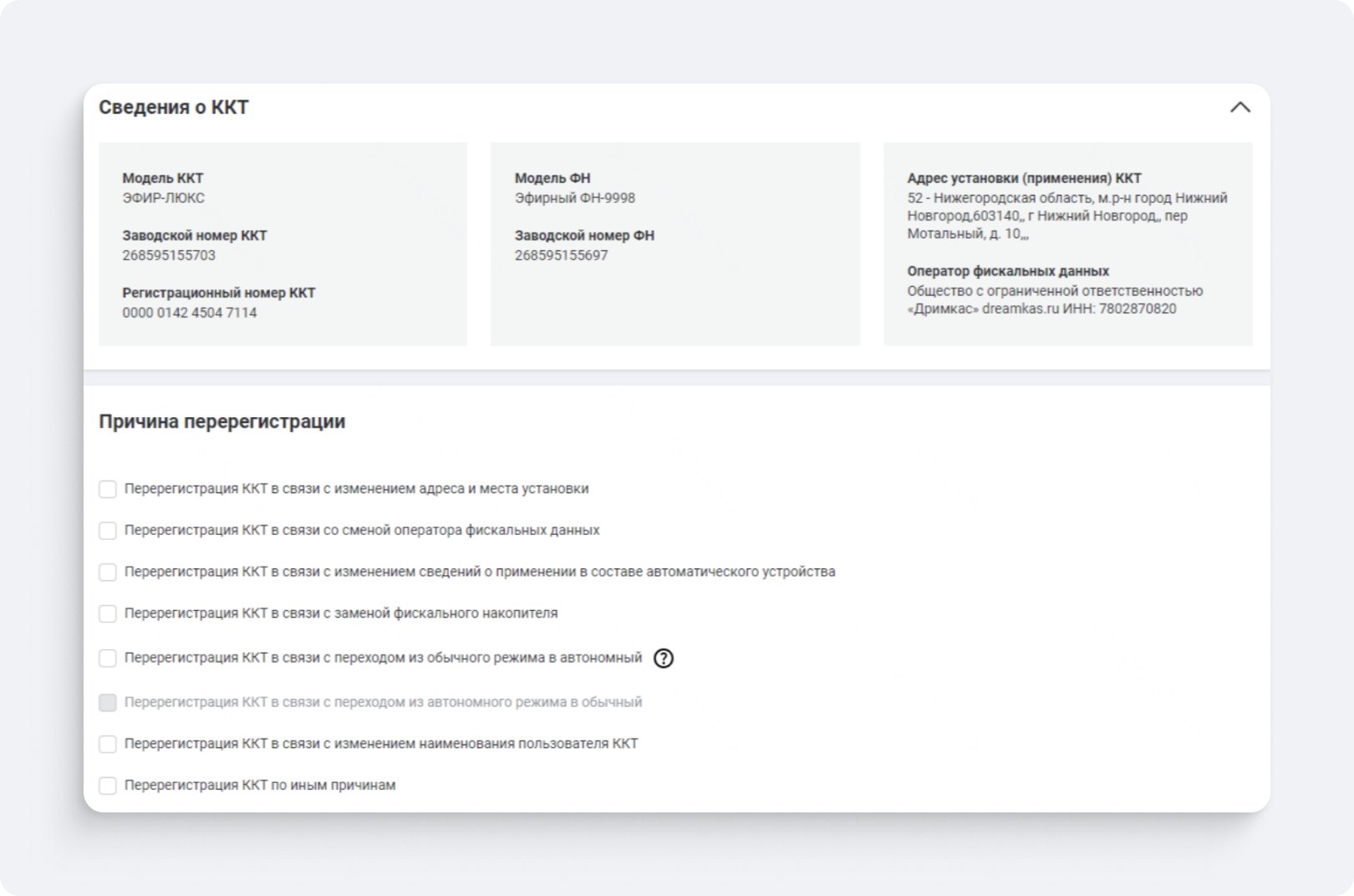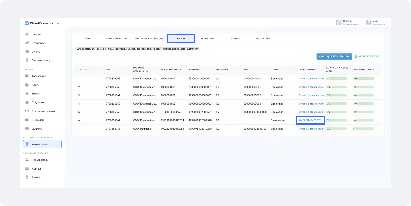 Регистрация и фискализация кассы