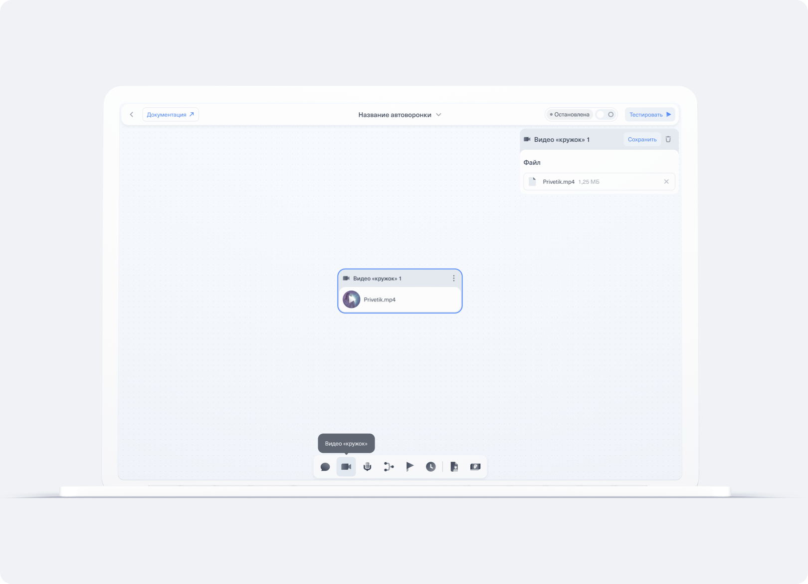 Работа в редакторе автоворонки CloudBot — настройка видео